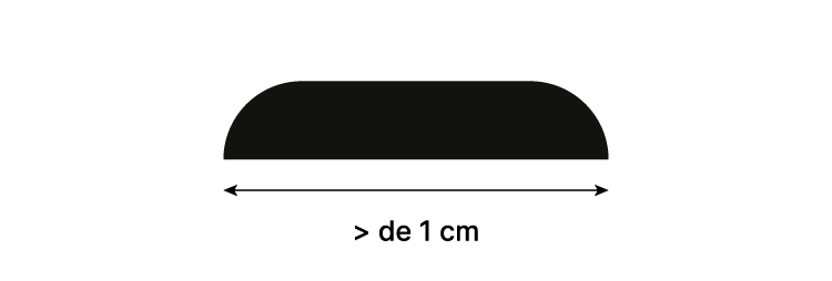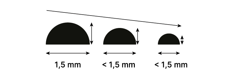 - En cambio, en elementos mayores de 1,5 mm, el volumen se conserva, pero se pierde el efecto semiesférico perfecto a medida que aumenta el tamaño.