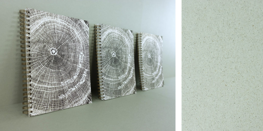 Es importante atender a las tendencias de consumo y trasladarlas al sector editorial como es el caso de este cuaderno de notas con encuadernación de WIRE-O y portada de papel hierba, compuesto por un 50% de hierba seca y un 50% de madera. Se trata de un soporte totalmente biodegradable y reciclable.