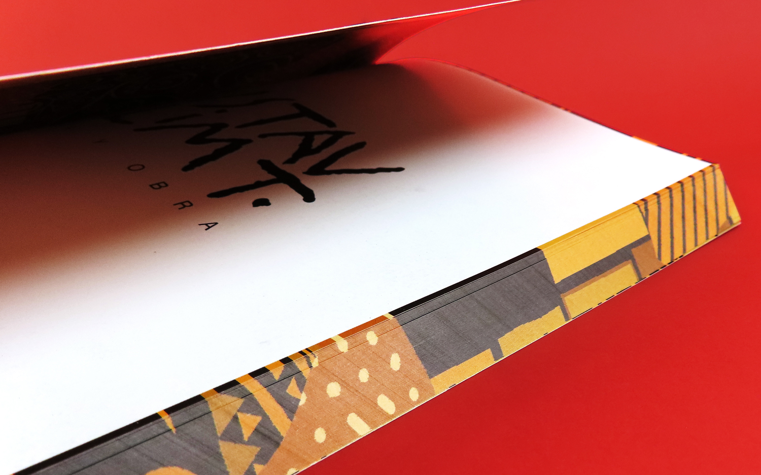 Como valor añadido, se han impreso los cantos del libro en todo el perímetro con un grafismo inspirado en los cuadros de Klimt. Se trata de un detalle que potencia el diseño del libro, diferenciándolo de otras obras monográficas y revalorizando su precio final.