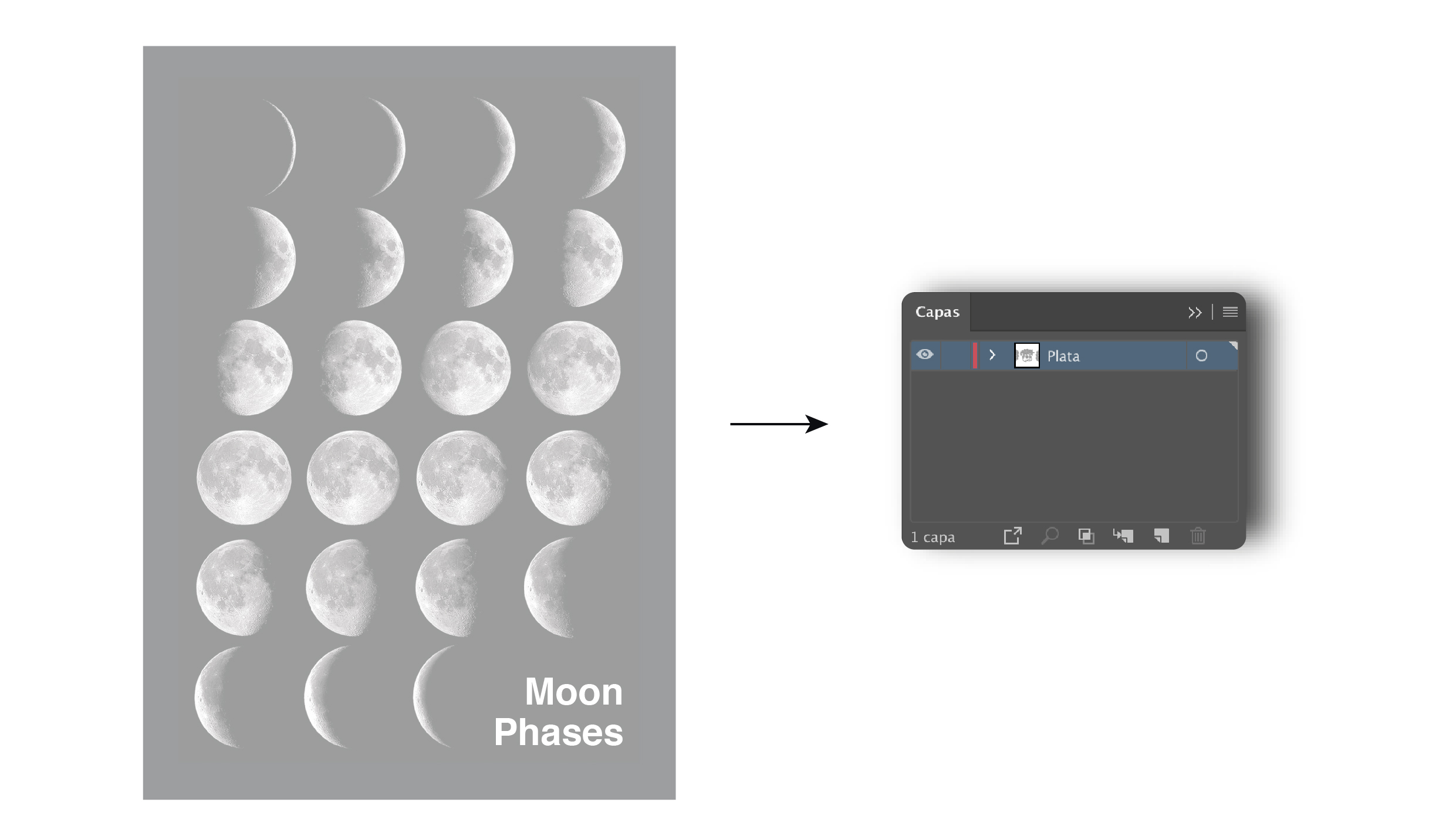 2- Se crea una segunda capa bajo el nombre de “PLATA” en la que se incluyen las partes del diseño que van a llevar esta tinta, ya sea de manera directa o en combinación con tintas CMYK. Se trata de la base de plata.